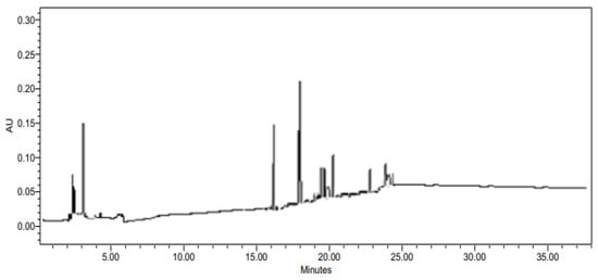 The peptide profile was evaluated through HPLC analysis [33,34]. Waters 660E HPLC system and the column, MZ Analysentechnik C18 (4.6 mm × 25.0 cm) were used. The Empower 2 Software Build 2154 (version 6.20.00.00) was used for the analysis. The elution was a gradient, using solvents A (0.1% v/v trifluoroacetic acid in HPLC-grade water) and B (0.09% v/v trifluoroacetic acid in a 60:40 v/v mixture of acetonitrile and HPLC-grade water). Solvent A was 100% for 5 min, followed by a change in composition from 0% to 100% of solvent B for 20 min, and finally, 100% solvent B for 13 min. The flow rate was 0.8 mL/min. Before injection, the samples were diluted 10 times with deionized water. A volume of 20 μL of diluted WSE was injected into the column and the peptide elution was monitored at 214 nm.