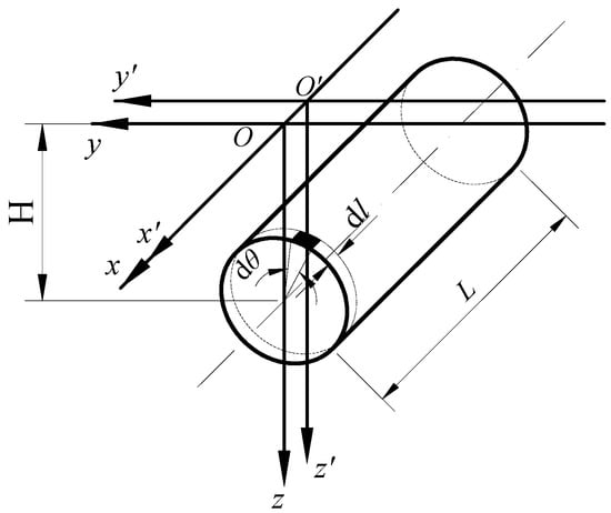 The micro-element area of the cylindrical surface of the friction force acting on the shield shell is taken as, as shown in Figure 3, and the coordinate transformation is as follows: