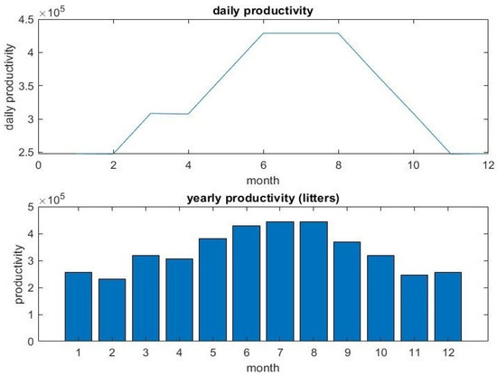 The rate of production of the solar water pumping system on a daily, monthly, and annual basis.