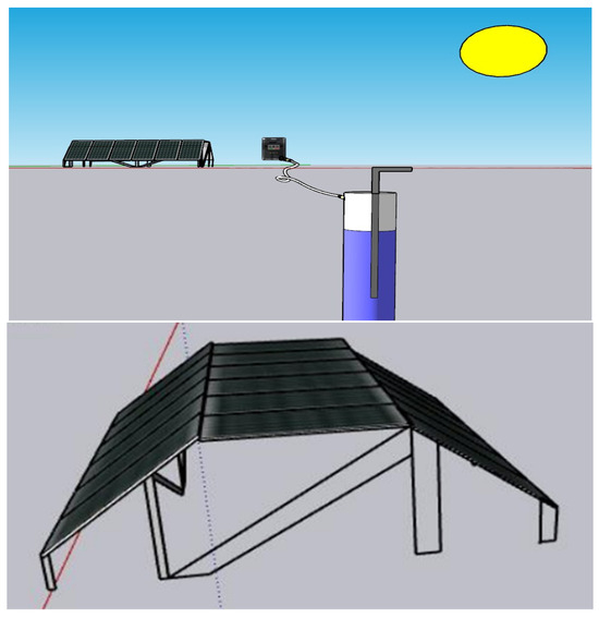 Due to their capacity to reduce carbon emissions and mitigate the effects of global warming, the use of renewable energy has increased recently and received considerable attention. However, the performance of photovoltaic systems is affected by a few variables, such as temperature, shading, and uneven sunlight. The design and optimization of photovoltaic systems can benefit from the use of modeling tools, and two of the most popular programs for doing so are MATLAB 9.10.0.1577079 and SketchUp 8.0.16846. The use of these programs to create a solar pumping system that can produce 7.5 kW will be covered in this study. In the Wafaa area of the Al-Anbar province in Iraq, which covers an area of 7639 square kilometers and depends on wells to meet daily needs, the Ministry of Water Management and the General Directorate for Ground Water applied to the Department of Geology to obtain all the information about the land and the specifications of the well in the area as shown as shown in Table 1. A water well with a depth of 144 m was drilled with the use of a solar panel type (Trina type) with a capacity of 600 watts, which is available in local markets, with the use of a submersible water pump type (Grundfos Lenntech pump SP9-40 Rp2 4″3X380-415/50 7.5 kW pump) that has a capacity of 7.5 kW and includes other details for the design of the system [24].