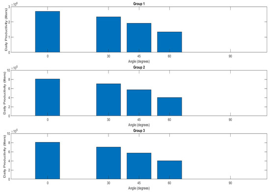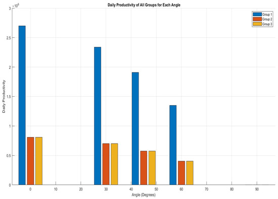 Daily output for each angle across all groups.