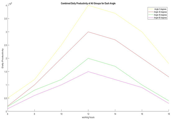 Total daily output for each angle across all groups.