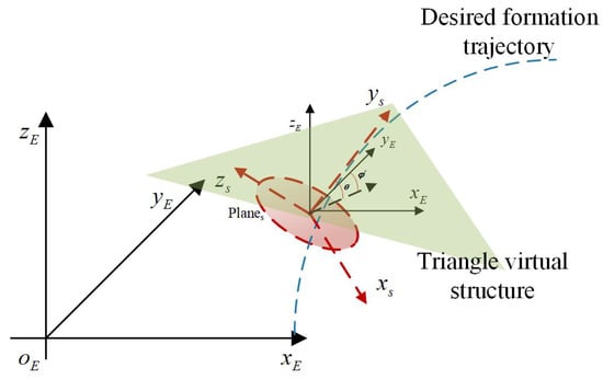 where is the transformation matrix from the virtual structure coordinate to the inertial coordinate, and it can be represented as Equation (16).