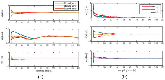 Position errors of the two robots. (a) Position error of Robot 1. (b) Position error of Robot 2.