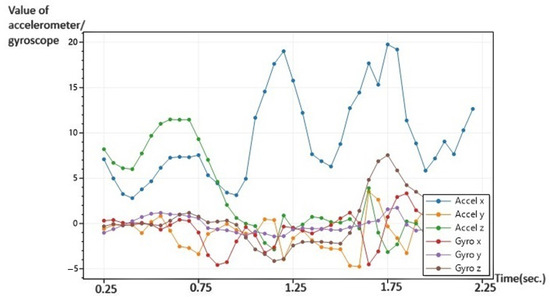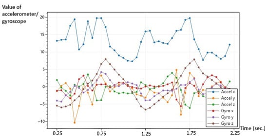 For HAR based on accelerometer and gyroscope data, provided by sensors also found in a smartwatch, the classic approach is to use the raw sensor data and preprocess it. Features are then extracted and used to train a neural network for activity recognition. In this scenario, the neural network input is represented by a series of numeric values that try to capture the essence of that particular activity. Based on the raw sensor data or even extracted features, plot images can be generated and fed to the neural network as input data instead of numerical values. In this scenario, the human activity recognition task becomes an image classification task, trying, in essence, to identify the activity based on the plot image using specific image classification neural networks. The numerical data that are turned into a plot image can be graphically represented in multiple ways depending on the type of plot image and the input raw data structure; these variations can have a significant impact on the activity recognition rate [10,11].