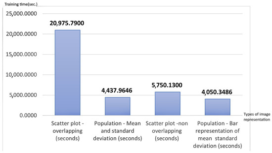 For non-overlapping scatter plots, we obtained a micro accuracy of 0.9383 using a training session with a duration of 5750.1130 s. The obtained non-overlapping scatter plot’s micro precision is smaller in this case with 0.0106 compared with using overlapping scatter plots. The training time is significantly lower, with a difference of 15,225.677 s compared to scatter plots.