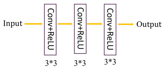 Our denoising is carried out in the phase domain of the image. We use 3 × 3 convolution for de-noising, each layer is the activation function structure of convolution+ReLU, and the de-noised phase spectrum is used for the subsequent IFFT. The specific network architecture is shown in Figure 2.