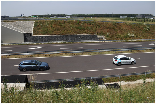 Data collection at the ZalaZONE experimental area included a large number of driving runs performed by ACC-equipped vehicles. Each trial involved the driving of two vehicles consecutively on the motorway, with the first serving as the leader and the second as the follower, as depicted in Figure 1.