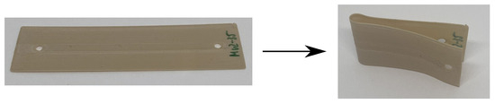 Analyzing Figure 8, a clear correlation emerged between the temperature during folding/bending and the quality of bending results. Higher temperatures during bending yielded superior outcomes, aligning with the principles of shape memory effects and supported by the DMTA results gathered by Pigliaru et al. [12] for PEEK (see Figure 14 PEEK_neat).