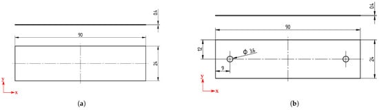 Technical drawing of the unfolded hinges used for the experiments in millimeters. (a) The hinge geometry for the first iteration programming device. (b) The adjusted hinge geometry for the second iteration programming device.
