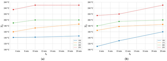Examining Figure 7, we observed a noticeable deviation between the measured surface temperature and the temperature set on the printer’s interface. This divergence is expected, given the influence of exposure time on achieving the desired temperature during programming. It is crucial to acknowledge that the thermal imaging camera used for surface temperature measurements introduces a margin of error due to variations across the programming device and hinge. Despite this inherent imprecision, the measured temperatures fell within a reasonable range relative to the set temperature on the printer’s interface.