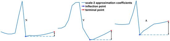 In order to lower the probability of activating the high-performance classifier and address the easy-to-classify segments, based on the morphological observation of the scale-3 approximation coefficients, we propose a method to determine whether the morphology is similar to A/V, as shown in Figure 12, which has a significant difference from normal.