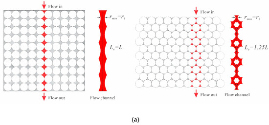 In nature, the flow tube is normally not straight but has some tortuosity. Here, we define the tortuosity as the ratio of the actual flow path (Le) to the length (L) of the porous medium along the macroscopic flow direction (Figure 8). Then, the equation about permeability should be revised accordingly.