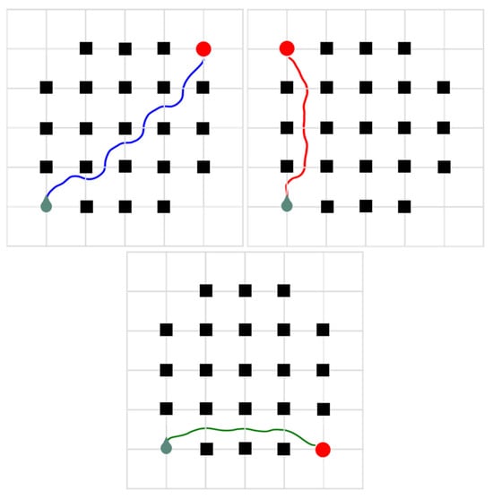 - Warren, C.W. Multiple robot path coordination using artificial potential fields. In Proceedings of the IEEE International Conference on Robotics and Automation, Cincinnati, OH, USA, 13–18 May 1990. [Google Scholar]