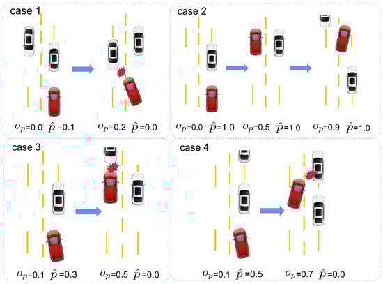 where represents the control signal to be executed by the vehicle in the next moment, and P and n are hyperparameters designed to address issues related to instability in the output probabilities of the probability generation module. When there is noise interference, the decision probability obtained from a certain piece of data may be lower than this threshold. If a vehicle that is overtaking in a safe environment conservatively returns to the main lane based on these data, the network will be too sensitive and it will be difficult for the vehicle to complete an overtaking maneuver. If n is too small, the error probabilities caused by recent noise in the received data could significantly impact the accuracy of current decisions, resulting in oscillations between overtaking and non-overtaking determinations. Conversely, if “n” is too large, the probabilities generated from past time instances could heavily influence current decisions, potentially causing the vehicle to miss the optimal overtaking or evasion timing. When the probability average of the last n predictor outputs is greater than P, the system can continue to use the overtaking signal to overtake. On the contrary, the vehicle should execute the reverse control signal of the previous step and finally return to the main lane.