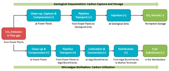- Yue, D.; Gong, J.; You, F. Synergies between Geological Sequestration and Microalgae Biofixation for Greenhouse Gas Abatement: Life Cycle Design of Carbon Capture, Utilization, and Storage Supply Chains. ACS Sustain. Chem. Eng. 2015, 3, 841–861. [Google Scholar] [CrossRef]