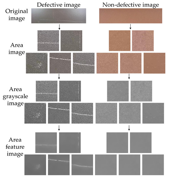 The image of the aluminum profile area is manipulated one by one using feature optimization [37] so that it attenuates the presence of complex textures on the non-defective parts of the aluminum profile surface and maintains the defective-feature information well.The feature-optimization process is shown in Figure 8.