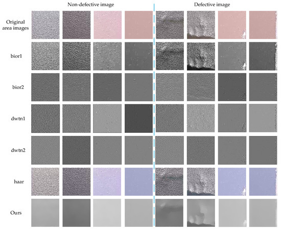 Some scholars have proposed different methods for object-surface-defect detection using supervised deep learning methods. For example, Dahai Liao et al. [9] proposed a non-destructive identification and classification method for surface defects based on the improved YOLOv5 algorithm, and they applied a new mobile network attention mechanism, coordinate attention, to the backbone of the YOLOv5 algorithm, giving better detection results. Kechen Song et al. [10] proposed a cross-layer semantic guidance network (CSGNet) based on the YOLOv6 algorithm, which introduces a cross-layer semantic guidance module (CSGM) that uses deeper semantic information to guide the shallower feature layer and improves performance for detecting tiny defects. Shenqi Guan et al. [11] proposed a new method to detect fabric surface defects by target-driven features, Compared with the classical defect algorithm, the algorithm is able to realize accurate segmentation of surface defects, has better noise resistance, higher detection accuracy, and has strong applicability to fabric defect detection. Chenglong Wang et al. [12] proposed a defect-detection model, MeDERT, for aluminum profiles based on the improvement of the classical detector YOLOv4, which is suitable for dealing with the image features of aluminum profiles, and the experimental results show that MeDERT is superior to the models such as YOLOv5 and DERT, which effectively improves the defect detection performance. The above methods can more efficiently use the model to automatically extract good features and defective features, and the detection results are more accurate, but the model-training process requires the labeling of a large amount of data and defective samples in advance, and it is very difficult to collect complete defective samples.