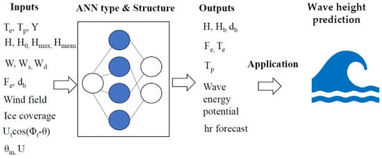 Figure 5 details the most common inputs and outputs used by ANNs in wave height prediction and the operating scheme.