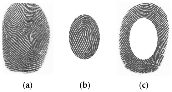 Cases of partially or low-quality fingerprints: (a) complete fingerprint, (b) the inner cylindrical region, (c) the outer cylindrical region.