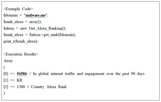 As shown in Figure 9, global traffic ranking information was collected through the Alexa Traffic Rank API.