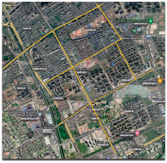 The study focused on a segment of Youyi Avenue in Wuchang District, Wuhan City, as shown in Figure 1. Data such as the locations of stations, intersections, access points, and the presence of segregated or non-segregated non-motorized traffic lanes along the route were acquired through Baidu Live Map.
