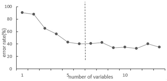 Employing a stepwise random forest approach, beginning with the highest-ranked variable based on the importance score, this study observed that the out-of-bag estimation error rate remained low and stable when limited to six variables. The top six variables, according to their importance scores, were absence of non-motorized lanes, lack of non-motorized segregation, cycling speed, the number of articulated protrusions on the roadway, the division of non-motorized lanes into parking zones, and the type of non-motorized vehicles (refer to Figure 3 for more details). Consequently, this paper infers that with or without non-motorized lanes, with or without human non-isolation, riding speed, the number of roadway articulation protrusions, with or without on-street parking area, and the type of non-motorized vehicles significantly impact riding vibration comfort. In contrast, the influence of the number of manhole covers, with or without machine non-isolated, the number of intersections, the percentage of e-bikes, the number of bus stops, the number of intersections, and the number of turns on riding vibration comfort is not substantial. Among the first six significant influences, in terms of road characteristics, road cross section and road surface are mostly significant factors, while road alignment and longitudinal section are in a non-significant position; in terms of traffic flow characteristics, speed and non-motorized vehicle models are a significant influence, while other influences are significant. In conclusion, it can be seen that the factors of road cross section and road surface as well as the speed of traffic flow and non-motorized vehicle models have a significant effect on riding vibration, while the route alignment and the percentage of different traffic flows have little effect on riding vibration.