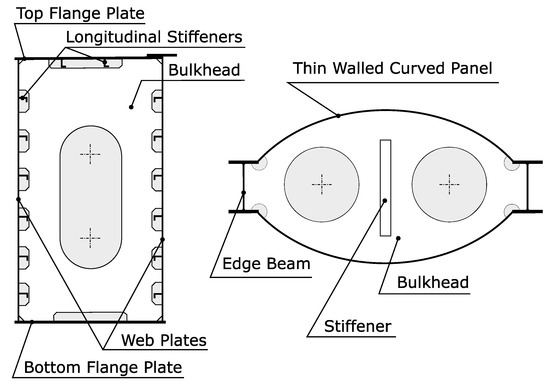 Unfortunately, this design approach is not directly applicable to the curved elements at hand due to the presumed boundary conditions of the mentioned method. After surveying the literature regarding cases of complex compound cross-sections that combine beam-, plate-, and/or shell-type elements, it can be concluded that such cross-sections have been less investigated than the single components that they are composed of. Nevertheless, as far as crane construction is concerned, the analysis presented in [24,25] shall be mentioned as an example as built-up cross-sections are also analyzed in these investigations.
