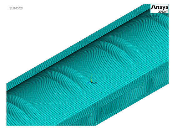 - Ansys Inc. Ansys 2023R1: Mechanical APDL Element Reference; Ansys Inc.: Canonsburg, PA, USA, 2022. [Google Scholar]