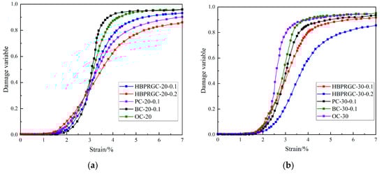 Damage evolution characteristics of HBPRGC. (a) C20; (b) C30.