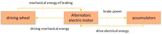 In contrast, significant advancements have been made in energy recovery technologies for electric vehicles globally. For instance, Honda’s electric car “Insight” features a regenerative braking system based on an ISG motor and hydraulic system. By combining this system with throttle control methods, they developed a control strategy for the braking force distribution coefficient, achieving efficient operation of the regenerative braking system. Similarly, Ford’s fuel cell car “Focus” is equipped with a regenerative braking system that enables the vehicle to achieve a range of 160–200 miles. Additionally, the HILS system developed by Chungham National University in South Korea is specifically designed for the braking force distribution system of hybrid vehicles. These examples illustrate that regenerative braking systems can significantly increase a vehicle’s driving range. Therefore, it is feasible to install regenerative braking systems on electric mine cars to achieve energy conservation and emission reduction goals [9,10,11,12].