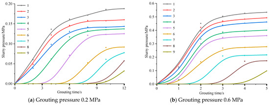 4.3. Analysis of Slurry Pressure Distribution Law by Grouting Pressure
