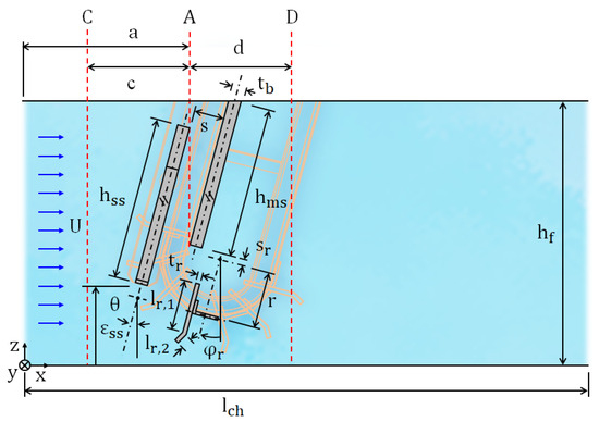The interaction between water flow and the bar screen, and its reciprocal influence, may be characterized as a fluid–structure interaction (FSI) problem. The experimental modelling and investigation of the FSI associated with the bar screen pose significant challenges due to the substantial costs associated with its fabrication and operation. The modelling of the FSI problem on a large scale is possible due to developments in computational fluid dynamics, such as the bar screen. The arbitrary Lagrangian–Eulerian (ALE) method is a well-known numerical technique that is used to model and solve the effects of fluid flow on the deformation of structures [10,11,12,13,14].