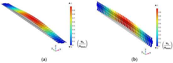 where sᵢⱼ and ϵᵢⱼ are the second Piola–Kirchhoff stress and the Green–Lagrange strain tensor components, respectively [35,36]. Lastly, a transformation of the force between the two coordinate systems is necessary, because the solid mechanics interfaces are defined in the material (undeformed) frame, whilst the Navier–Stokes equations are solved in the spatial (deformed) frame. Hence, a coordinate transformation is performed in the ALE model as follows: