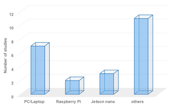 Semantic navigation systems require intensive processing capabilities. Therefore, it is crucial to employ an efficient processor unit to handle and process the data received from onboard sensors, including LiDAR and RGB camera units. Processing RGB and RGB-D images necessitates high processing capabilities for tasks such as object detection, recognition, and localization. Many researchers utilize personal computers integrated with the robot platform to perform these processing tasks. However, incorporating a computer (such as a laptop) onto the robot platform adds extra size, power consumption, cost, and complexity. Alternatively, some researchers have employed processors like Raspberry Pi, Jetson Nano, or Intel Galileo to handle the processing tasks. Figure 5 illustrates the distribution of existing robot semantic navigation systems based on the employed processor technology. Raspberry Pi computers are cost-efficient, adaptable, and compact, but they may struggle with complex processing tasks. Jetson Nano offers better specifications than Raspberry Pi but adds an additional cost to the overall robotic system.