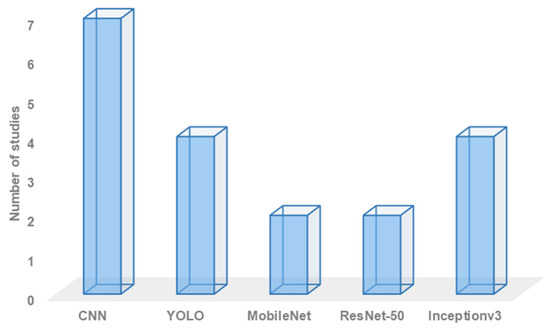 Robot semantic navigation systems necessitate the use of object recognition models to classify various types of objects within the area of interest. Several object recognition models have been developed for this purpose. For example, many researchers choose to develop customized convolutional neural network (CNN) models to classify objects of interest. Others employ models such as YOLO, MobileNet, ResNet, and Inception. The choice of an object recognition model primarily depends on the processor and memory capabilities of the system. Figure 6 provides an overview of the employed object recognition approaches in recently developed semantic navigation systems, offering statistics on their usage.