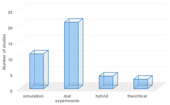 For validation purposes, researchers have the option to employ various experimental testbed environments. Initially, researchers often build their concepts using theoretical models to validate the efficiency of their systems. However, for more reliable and confident results, researchers typically perform either simulation experiments or real-world experiments to validate the effectiveness of the proposed robot semantic navigation system. Figure 9 illustrates the distribution of existing robot semantic navigation systems based on the type of experiment testbed employed.