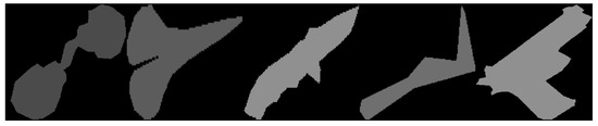 Pix2Pix with Masks: In this study, we prepared datasets to address the challenge of using masks as a single-channel input for generating new X-ray images. Our approach assigned a specific pixel value to each mask, uniquely representing different object categories. This method is particularly advantageous for X-ray imaging, where differentiating between elements requires a nuanced distinction. Each category within our dataset [45] was allocated a unique pixel value, facilitating a clearer differentiation among categories. An example of these masks is illustrated in Figure 5. To accommodate this labelling strategy, the Pix2Pix model was adapted; its generator output layer was modified to produce images where each pixel corresponded to the mask values, allowing the model to not only generate visual representations of objects but also classify them implicitly based on the mask’s pixel values. Additionally, the discriminator was fine-tuned to assess both the authenticity of the generated images and the accuracy of object representation as per the mask labels, enhancing the model’s ability to effectively distinguish between categories.