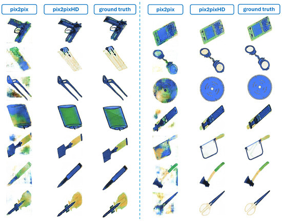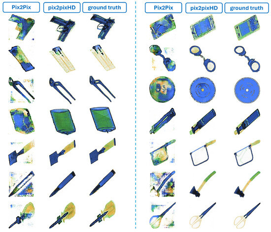 Similarly, super-resolution techniques like SRGAN, although useful for enhancing resolution, do not facilitate the essential semantic-to-photo translation required. StyleGAN models, focusing primarily on artistic effects, did not meet the accurate semantic correspondences crucial for security applications. Also, DCGAN, known for its efficiency in generating quality images from noise, was unsuitable due to its inability to perform paired image translation [37], a key requirement for achieving the high fidelity necessary in our work. In contrast, Pix2Pix and Pix2PixHD, with their robust methodologies for handling paired data, provided a superior solution that aligned perfectly with the stringent needs of creating high-quality X-ray security images, ensuring both detail accuracy and high resolution.