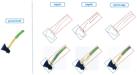 Hybrid Edge: A method that combined Edge01 and Edge02 to enhance image input data, improving both texture detail and shape accuracy. This approach overcame the limitations of Edge01’s focus on outlines and Edge02’s focus on internal details, providing a comprehensive solution for generating detailed and accurate images. This approach is illustrated in Figure 2.