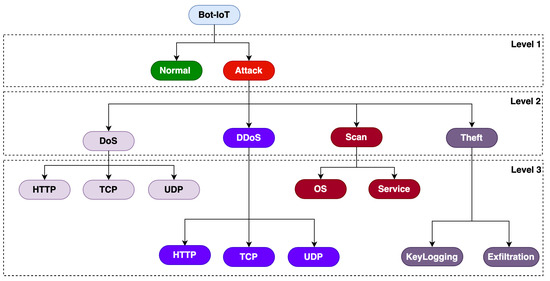 The hierarchical structure of the Bot-IoT dataset.