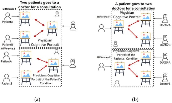 Medical diagnostic differences. (a) Patient perceived portrait of doctor vs. doctor’s own perceived portrait. (b) Patient expectation of dcotor perceived portrait of symptoms vs. dcotor perceived portrait of patient Disease.