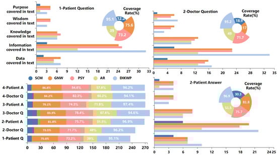 Due to the inherent subjectivity in qualitative comparisons, we conduct a more detailed quantitative comparison to better illustrate the advantages of the DIKWP model in aspects such as interpretability. In Case 2, where and prescribe different tests, we map the text content into the DIKWP graph. We compare the coverage of text processing by the five methods sentence by sentence (as shown in Figure 12). To process DIKWP uncertainty issues, we compare—sentence by sentence—the capabilities of these five methods in addressing the issue (as shown in Figure 13), taking the following as an example: