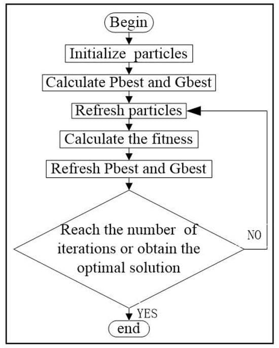 In the formula, is the individual extremum of particle i based on its own flight experience, is the global extremum obtained from the group of particles’ flight experience, ωpso is the inertia weight factor, and c1, c2 is the acceleration constant.