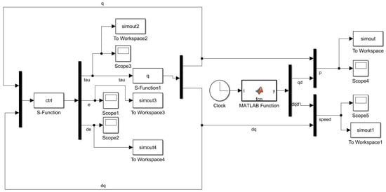 In the formula, represents the coordinates of the system’s kinetic energy and potential energy, is the corresponding speed, n is the number of connecting rods, and Fi is the force matrix of the ith joint on the supplied material device. Finally, the formulation, taking into account external interference and unmodeled dynamics, is modeled as follows [17]: