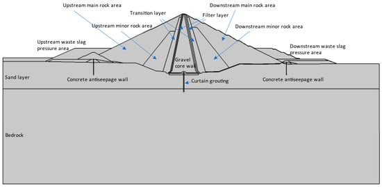 Embankment dams are the most widely used dam style in the world. A core-rockfill dam is a type of embankment dam and is widely used, and core rockfill dams are increasingly being built and put into use. Core-rockfill dams such as Changhe dam (240 m), Nuozhadu dam (261.5 m), and Lianghekou dam (293 m) have been built. Gushui dam (305 m) and Shuangjiangkou dam (314 m) are under construction []. Penetration damage is one of the most common forms of damage to embankment dams due to defects in the foundation and body of the dam itself or the effect of dam-penetrating structures, 25% of embankment dam failures [] are caused by dam failure worldwide, and about 30% of embankment dam wrecks in China are due to penetration damage [].