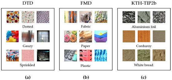 (a–c) are example images for the texture dataset, respectively.