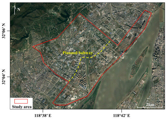 Nanjing Jiangbei New District holds significant importance as a key junction connecting the state-level New District, the Yangtze River Economic Belt, and the eastern coastal economic belt. It serves as an extension and expansion of Nanjing’s primary urban functions in the Jiangbei area. In the central area of Jiangbei New District, the planned construction of underground space encompasses a total area ranging from 4.5 to 4.8 million square meters. This extensive area includes the development of three planned subways as well as multiple underground highway tunnels. The presence of these ambitious projects clearly highlights the significant demand for underground space development in the future. Therefore, this central area with 34.5 km2 is selected in this study, as shown in Figure 3.