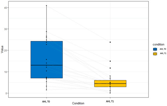 Box-plot type graph showing the values of AHI before and after the application of the F22 MAD.