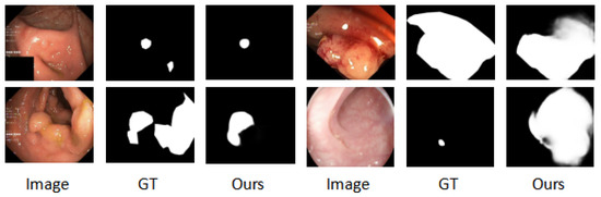 Visualization results with the current models. As we can see, the proposed model could accurately locate and segment the polyps, regardless of size.
